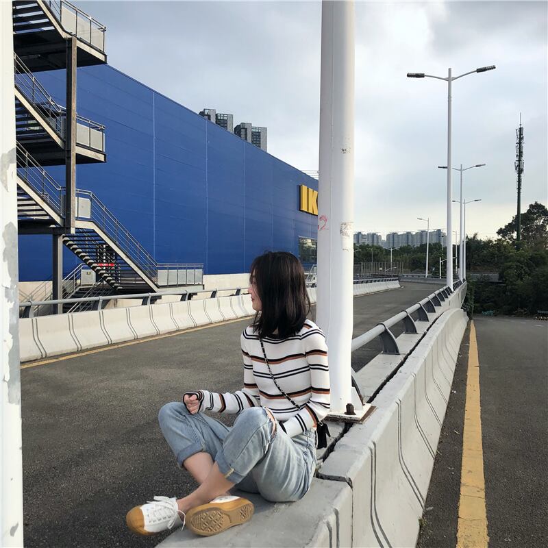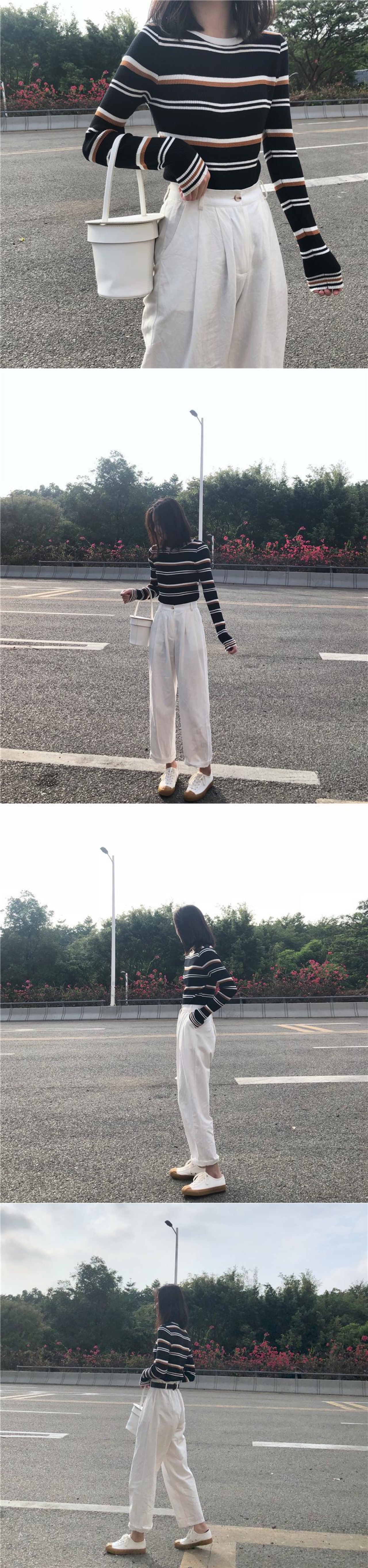 2021 最新作 ストライプのインナー長袖スプリングトッププルオーバーセーターを備えた女性の薄いボトミングシャツは薄く、学生のスリムなラウンドネックライトはおなじみです ロング 春物 Oネック 0142547453375