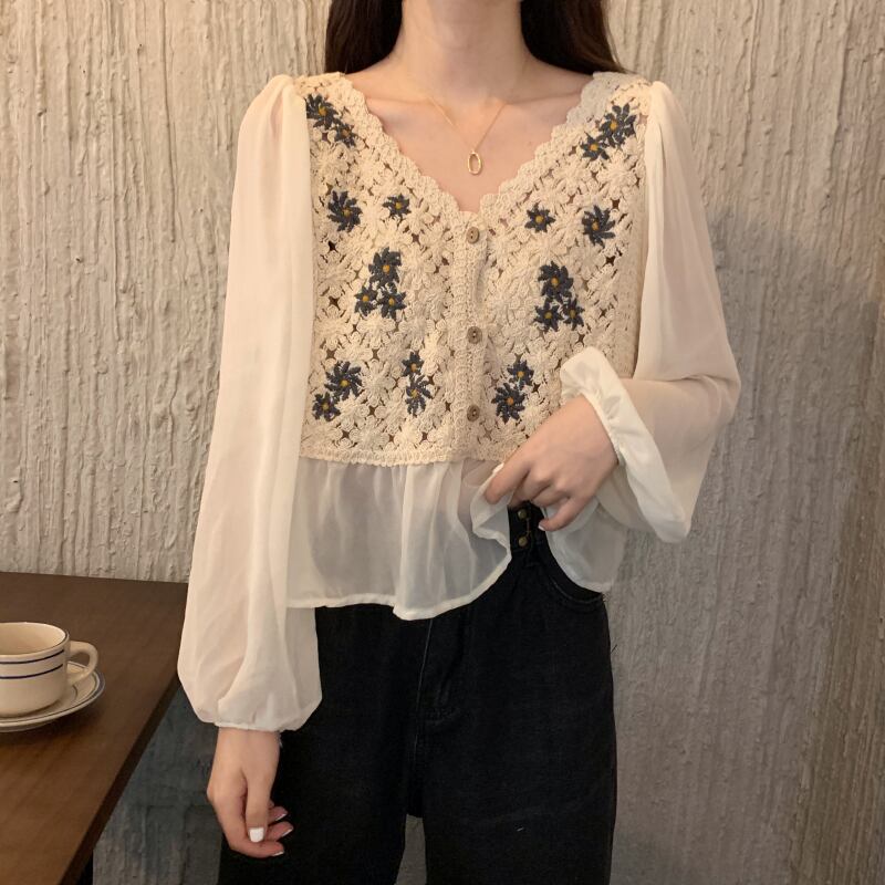 2021 最新作 2021年春の新しいレトロな香港スタイルのシックなブラウスデザインのニッチなハイエンドシフォンシャツの女性 スプリング 春物 0190834456799