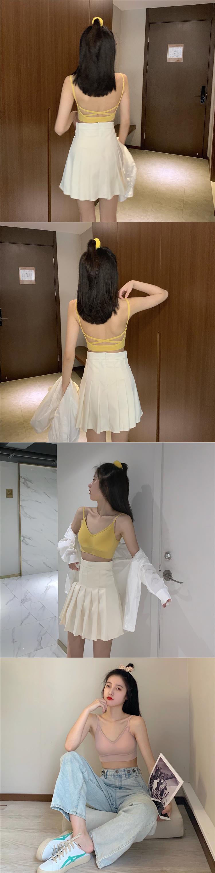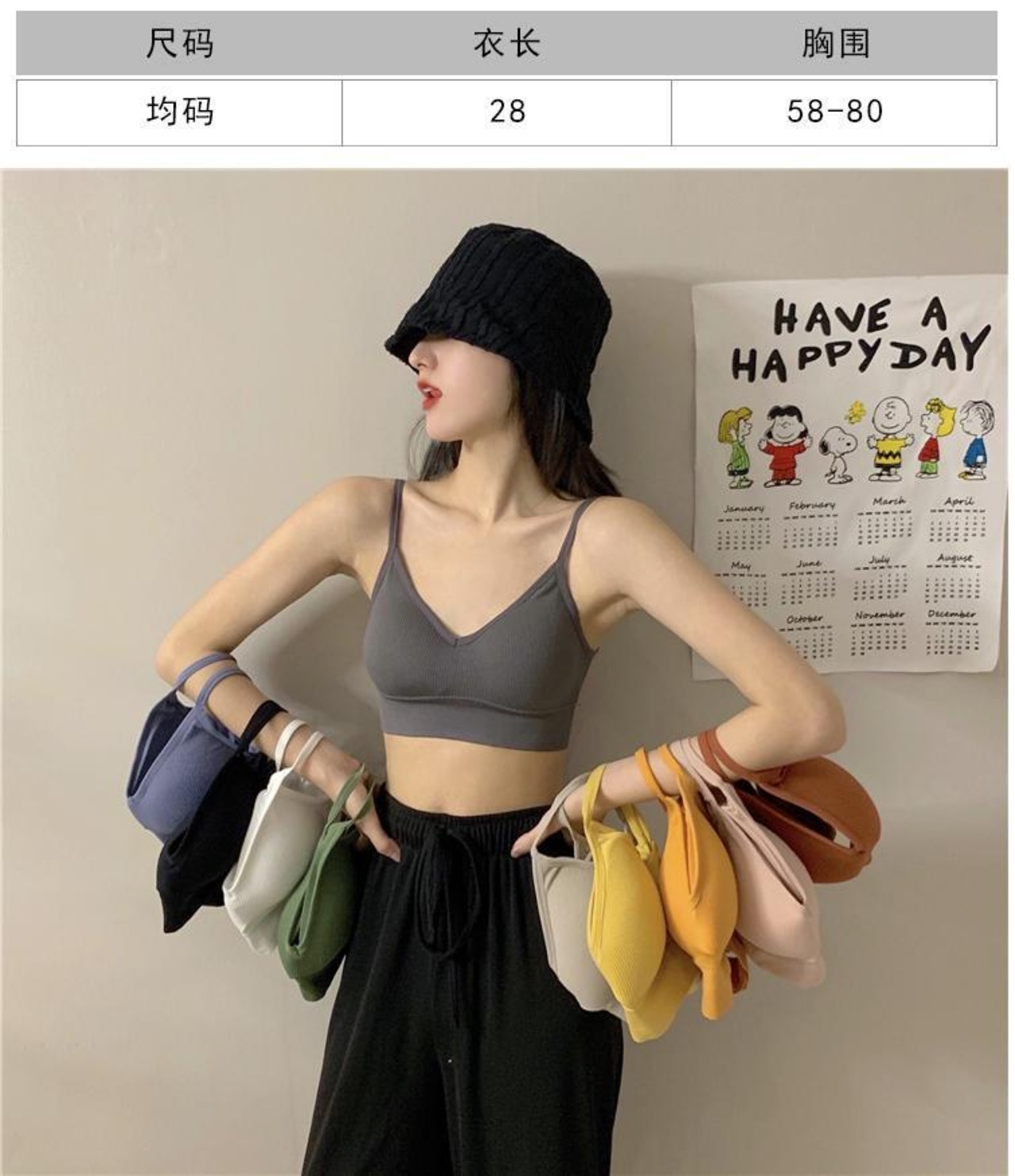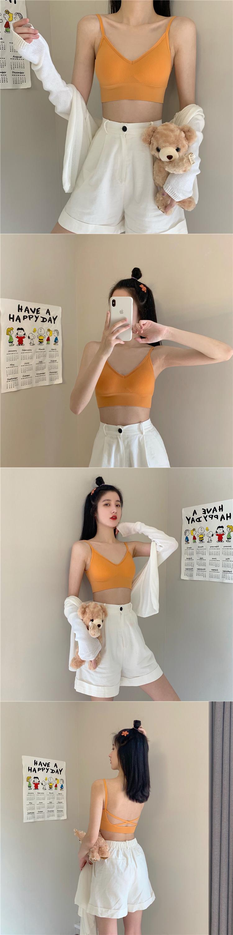 2021 最新作 インキャンディーカラーの美しいバックスモールキャミソール女性サマーベルトチェストパッドは薄く、ショートスポーツ下着、アウターウェア レッド 夏物 ハーネス 0148079480079