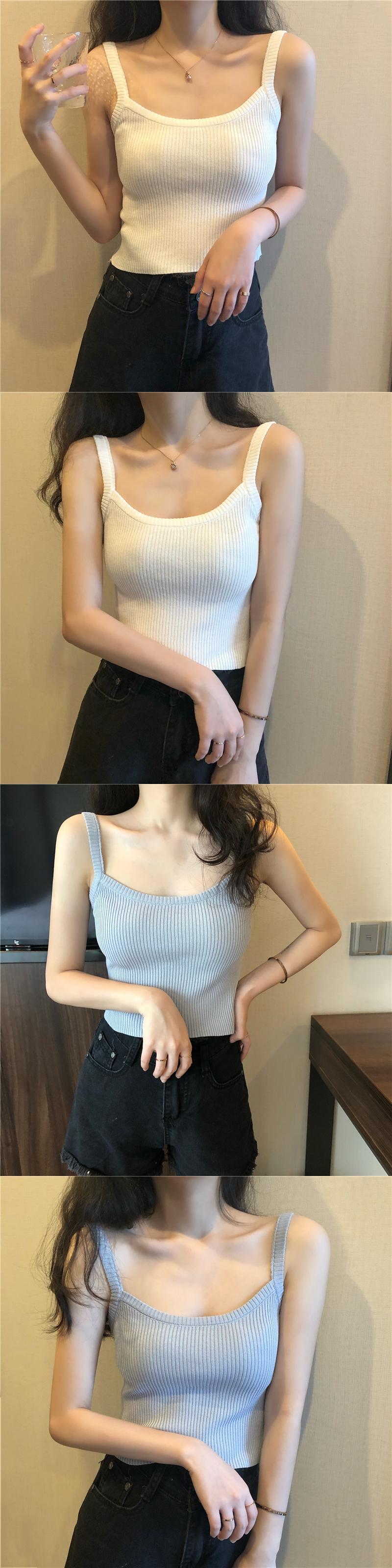 2021 最新作 ブラックニットノースリーブTシャツのサマーインタイドバージョン、ショートショートキャミソール、レディースインナーボトミングシャツトップ 夏物 0160282473883