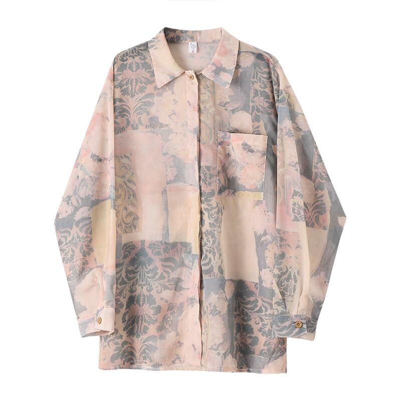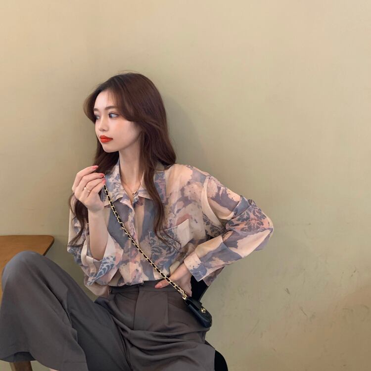 【送料無料】 女性の2021年の新しいトレンディな香港スタイルのプリントシャツデザインのニッチなセンスの軽い調理済みレトロな香港フレーバーフローラルシフォントップ 花柄 TB1 0125418438867