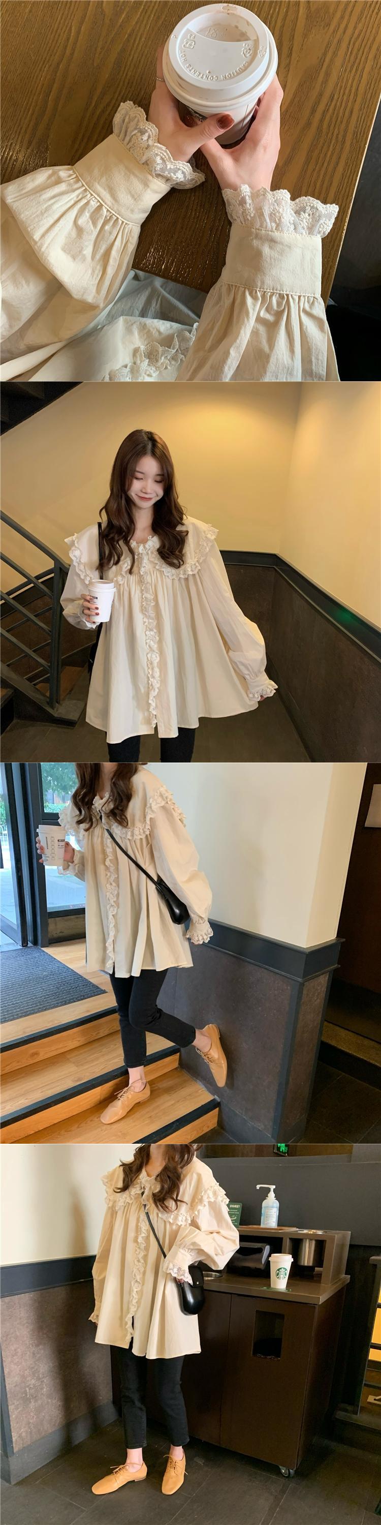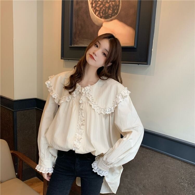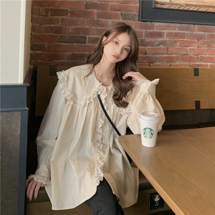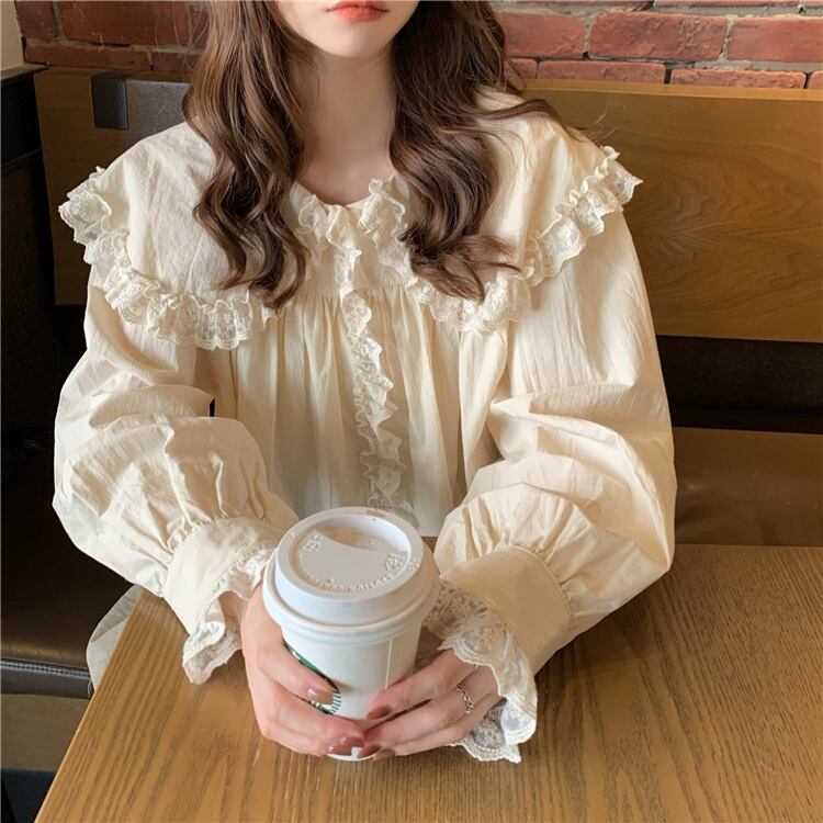 【送料無料】 ドールカラーブラウス女性フリルスウィートスーパーフェアリーデザインセンスニッチオールマッチパフスリーブルーズシャツ女性 大人ガーリー キュート カジュアル TB1 0178332080647