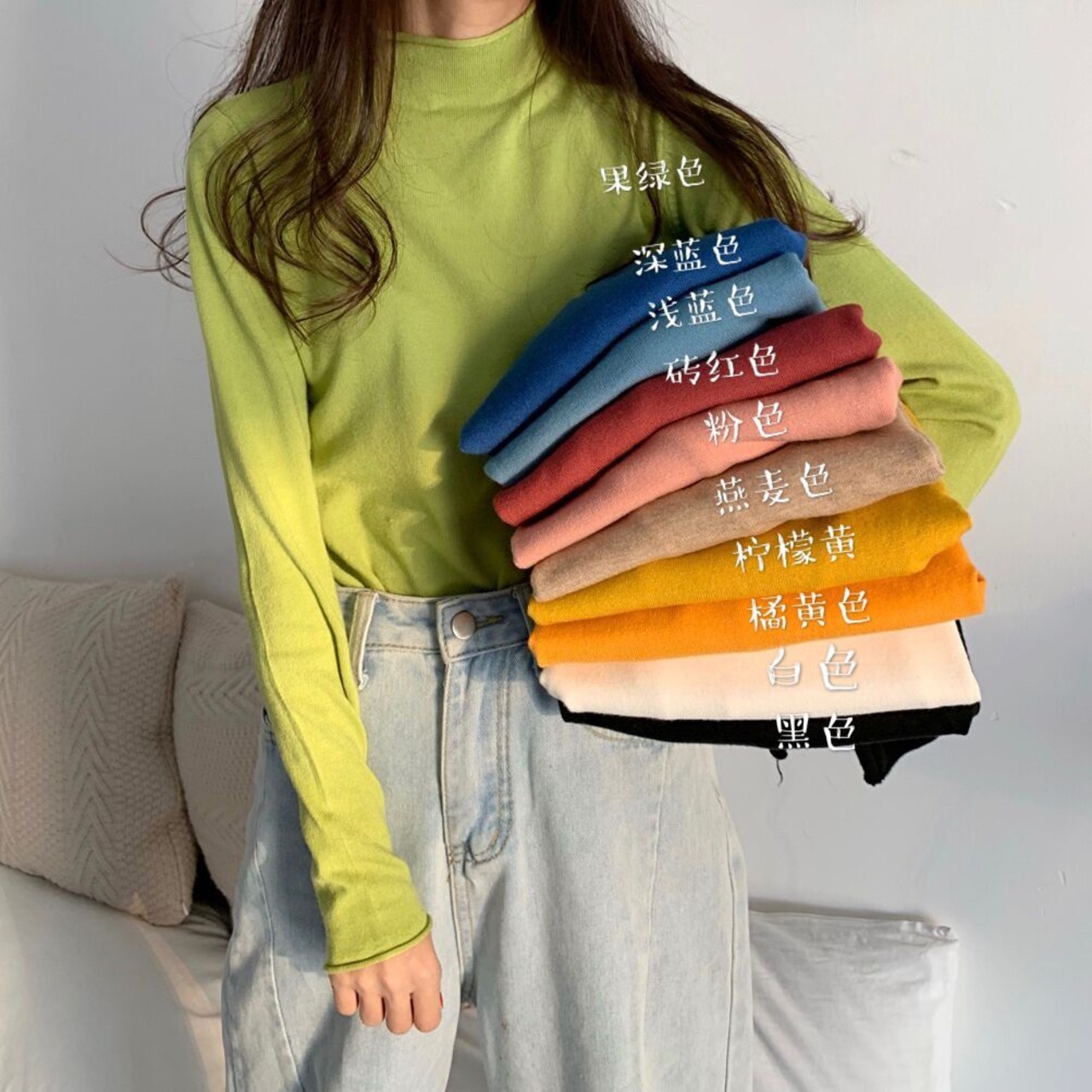 【送料無料】 女性の春シーズンのニットボトミングシャツ、怠惰なスタイルのルーズな長袖トップを備えたハーフハイカラーのキャンディーカラーのウエスタンスタイルのセーター ロング レッド スプリング 春物 TB1 014644649758