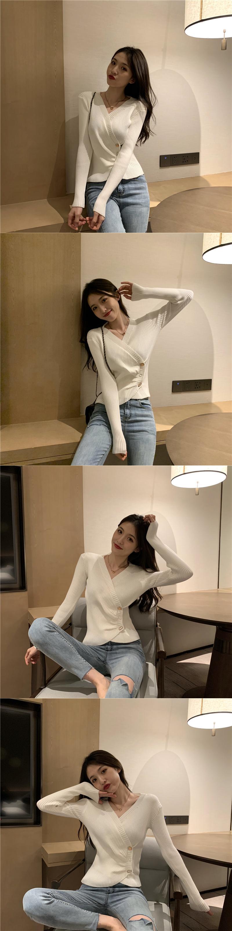 【送料無料】 ウエスタンスタイルのデザインのVネッククロストップを備えたニットボトミングシャツ女性の2021年春の新しいセーター スプリング 春物 TB1 0115101558926