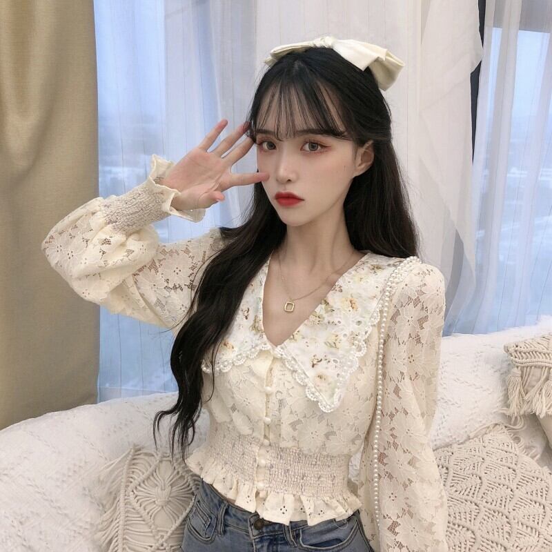 【送料無料】 2021年春の新作フレンチパレスレースシャツウエストに優しいブラウスをあしらったレトロな香港風の女性デザインセンス スプリング 春物 TB1 0166397643368