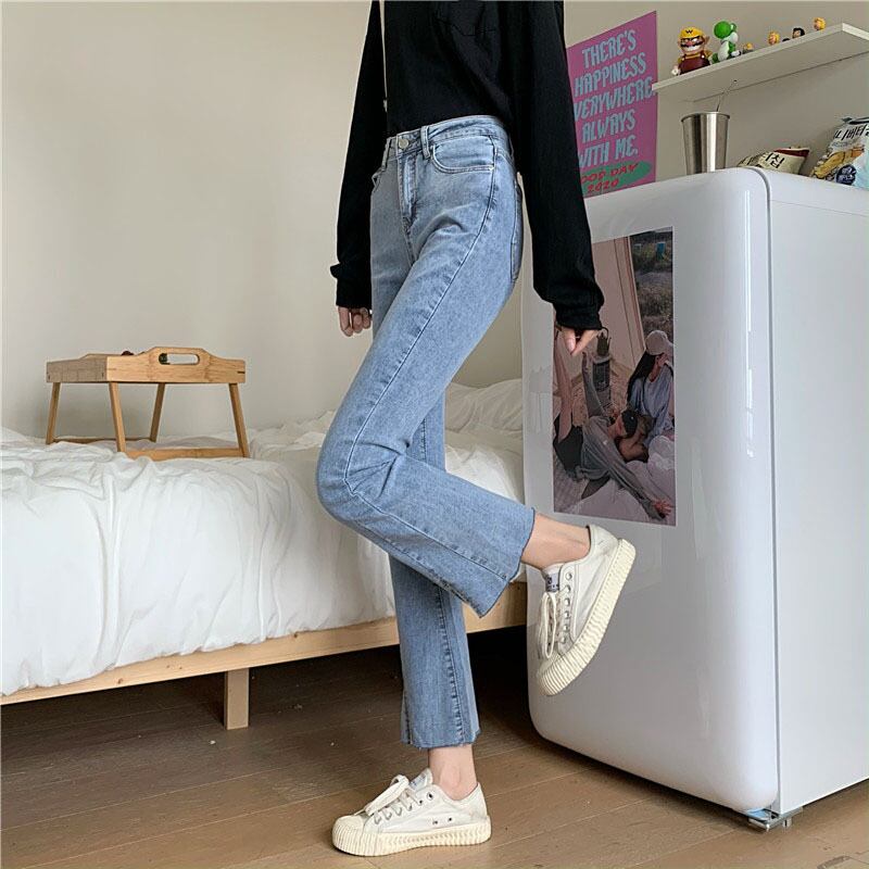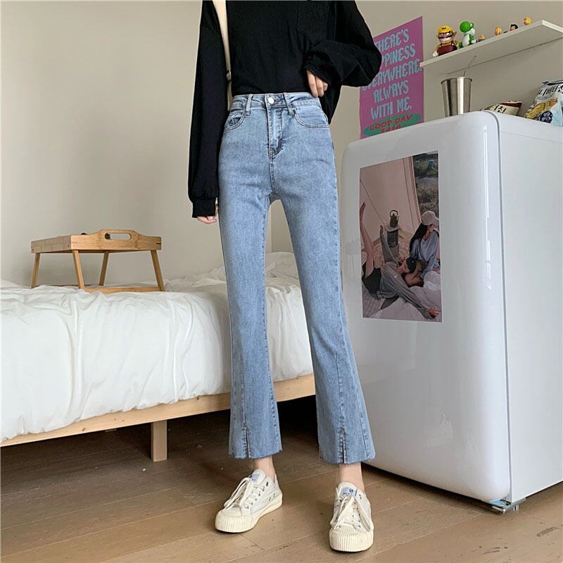 【送料無料】 春の女性のハイウエスト9ポイントマイクロフラップパンツは薄くて背が高く、ルーズな150の小さなスプリットジーンズのワイドレッグオールマッチでした スプリング 春物 TB1 0159597502879