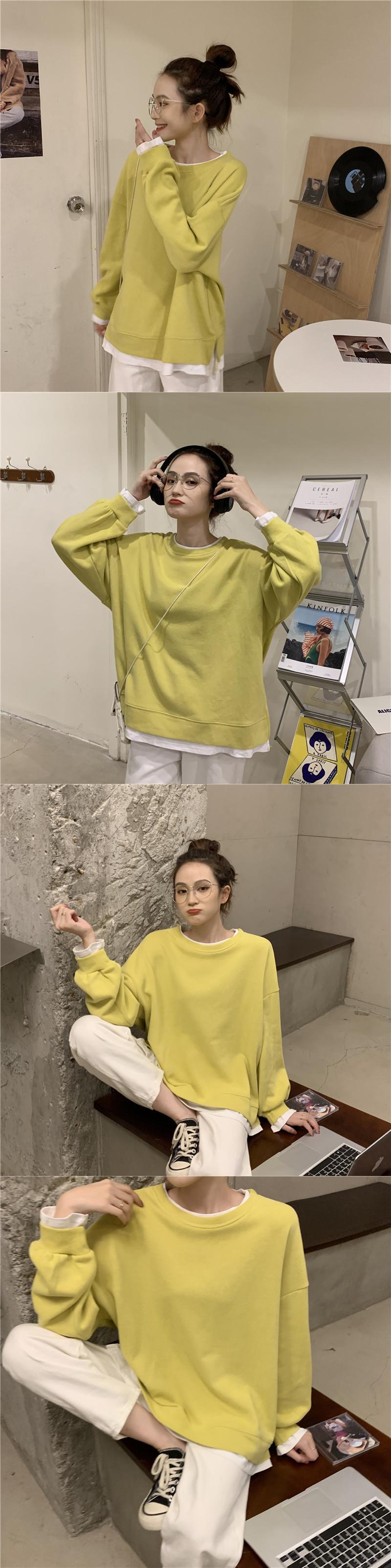 【送料無料】 偽のツーピースピンクのセーター女性香港スタイルのシックな姉妹のドレスルーズラウンドネックプルオーバーフードレスフレンズトップ Oネック TB1 0158526687845