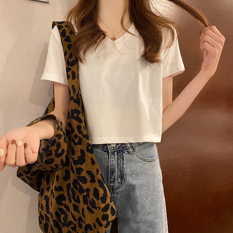 【送料無料】 2021年夏の新しいルーズベリー半袖香港スタイルの薄いVネックショートトップ女性デザインの白いTシャツ ホワイト サマー 夏物 TB1 0154691848655