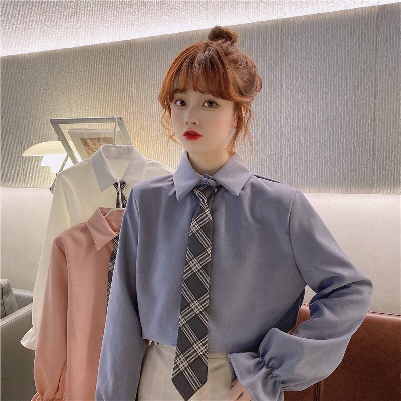 【送料無料】 甘い大学スタイルのネクタイシャツ長袖の女性のデザインセンスニッチ春と秋ルーズワイルド学生白いシャツ ロング ホワイト 大人ガーリー スウィート キュート カジュアル スプリング 春物 オータム 秋物 TB1 0141332548788