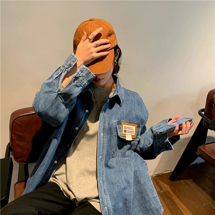 【送料無料】 春の新作2021年デニムシャツジャケット女性イントレンドレトロ香港スタイルシャツデザインセンスニッチでおなじみ スプリング 春物 TB1 0191797285069