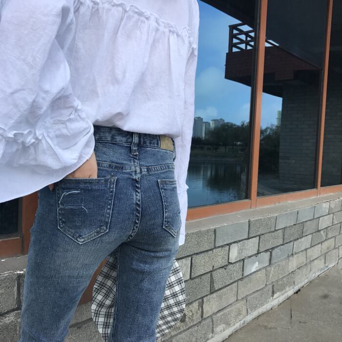 【送料無料】 パンツ女性の2021年の新しい破れたジーンズタイトフィットストレッチクロップドパンツスプリットエンドは薄いと薄いヤヤパンツのトレンドを示しています TB1 0135614691336
