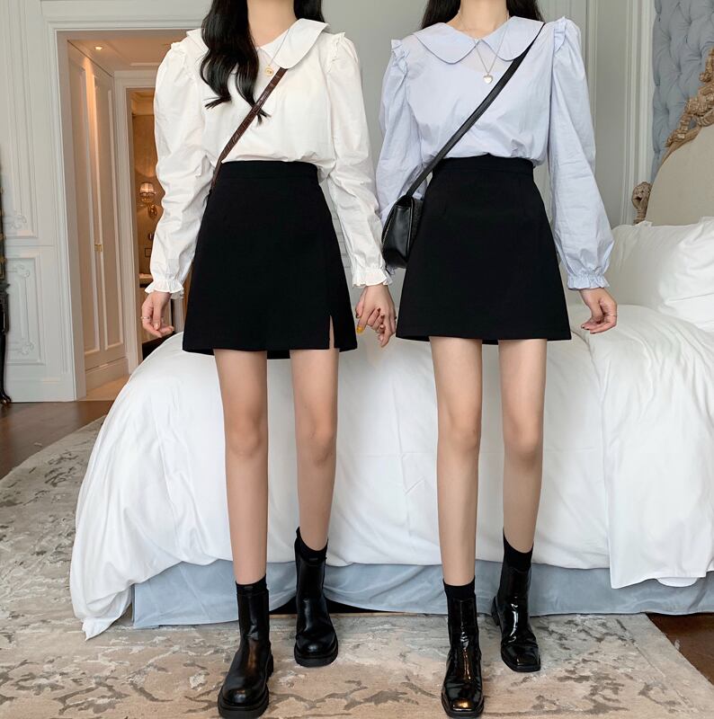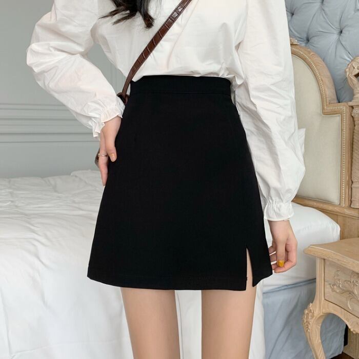【送料無料】 ショートスカート女性2021年春夏新作スプリットブラックハーフレングススカート股間ヒップスカートを覆うスモールハイウエストAラインスカート スプリング 春物 サマー 夏物 TB1 0176575989111
