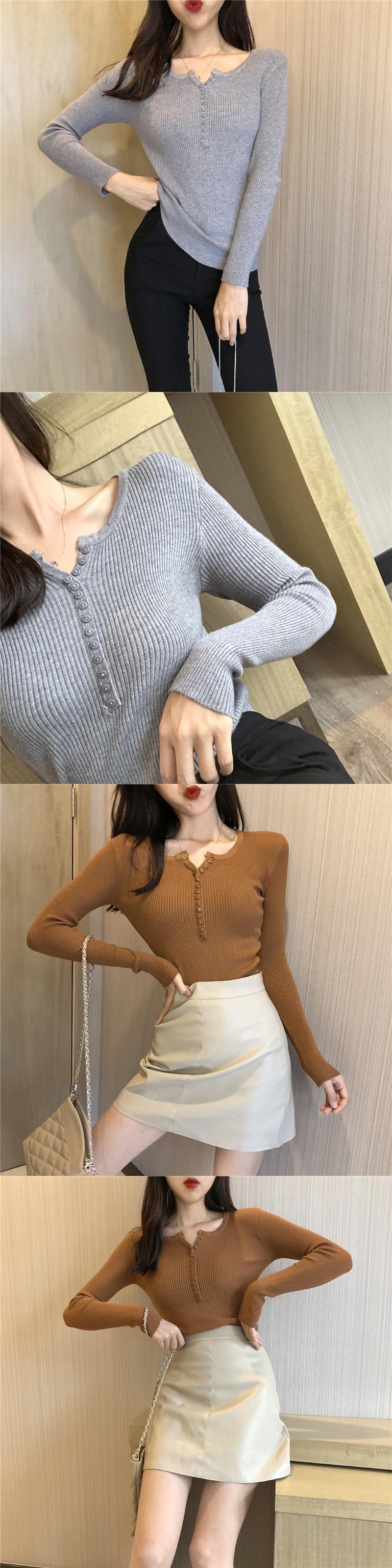 【送料無料】 春の新作シングルブレストVネック長袖セーターボトミングシャツレディース無地は薄くてタイトなニットセータートップ ロング スプリング 春物 ソリッドカラー TB1 0155146944965
