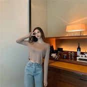 【送料無料】 2021年春の新しいルーズトップとハイウエストパンツウエスタンスタイルの白い長袖Tシャツ女性のショートイントレンディなバージョン ハイウェスト ロング ホワイト スプリング 春物 TB1 0131470329878