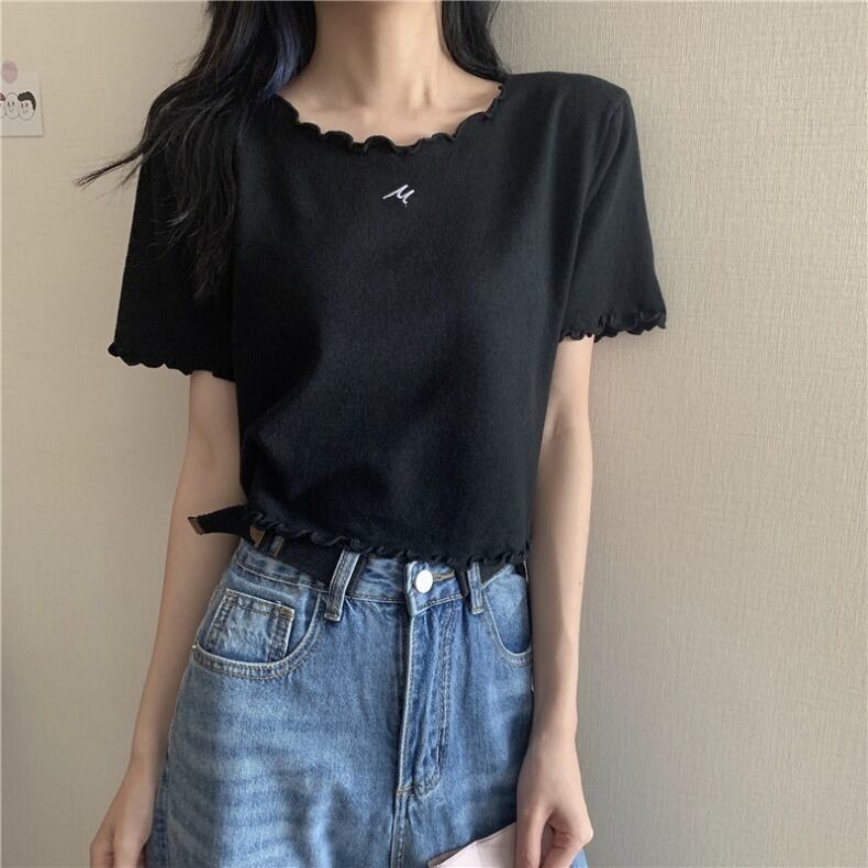 【送料無料】 半袖Tシャツ女性2021年夏新バージョンは薄くてワイルドネットセレブシンプル木製耳編みショートトップ サマー 夏物 TB1 0144990779262