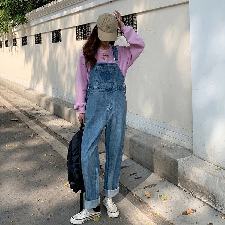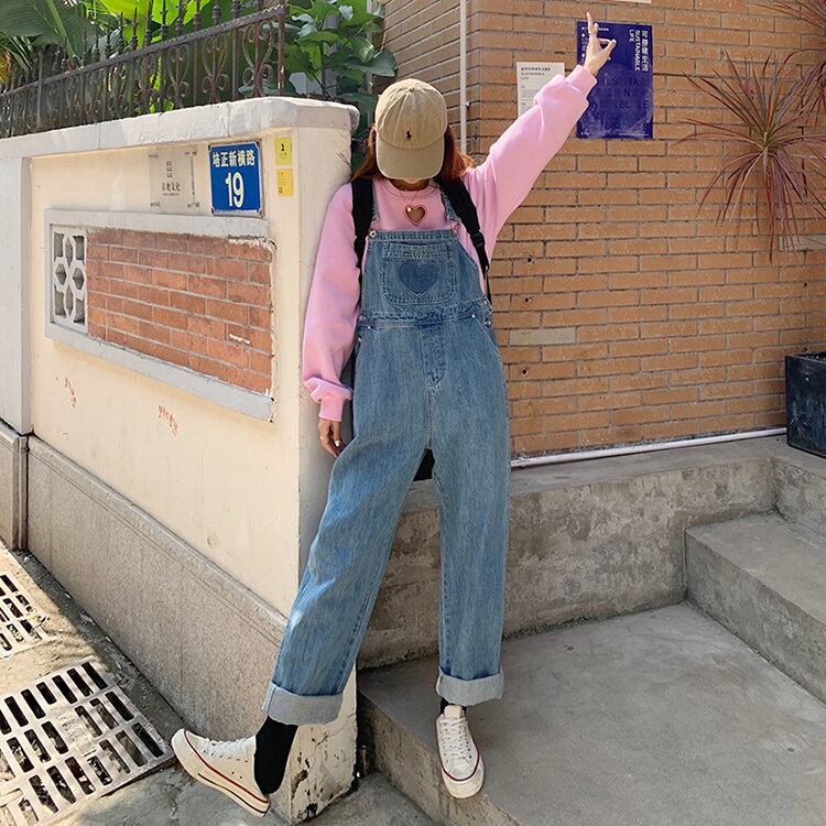 【送料無料】 春秋バージョンのルーズラブデニムオーバーオール女性キュートなeseスモール150スリムストレートジャンプスーツ 大人ガーリー スウィート カジュアル スプリング 春物 オータム 秋物 TB1 0156722786108
