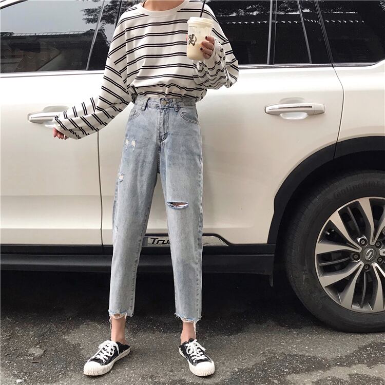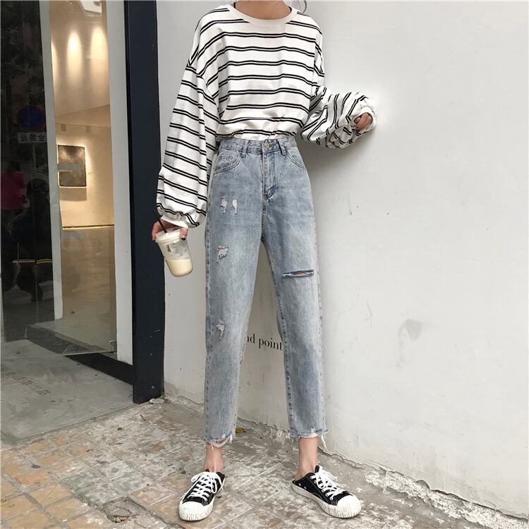 【送料無料】 ネットレッドオールドパパパンツ2021春新ハイウエスト9点パンツストレートホールセックパンツワイドレッグジーンズレディース スプリング 春物 TB1 0186299968653