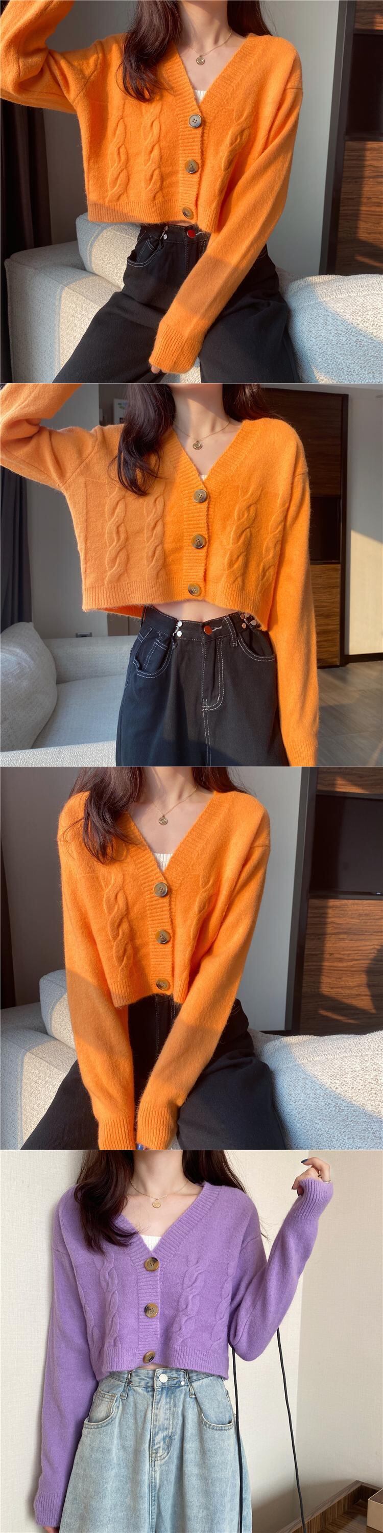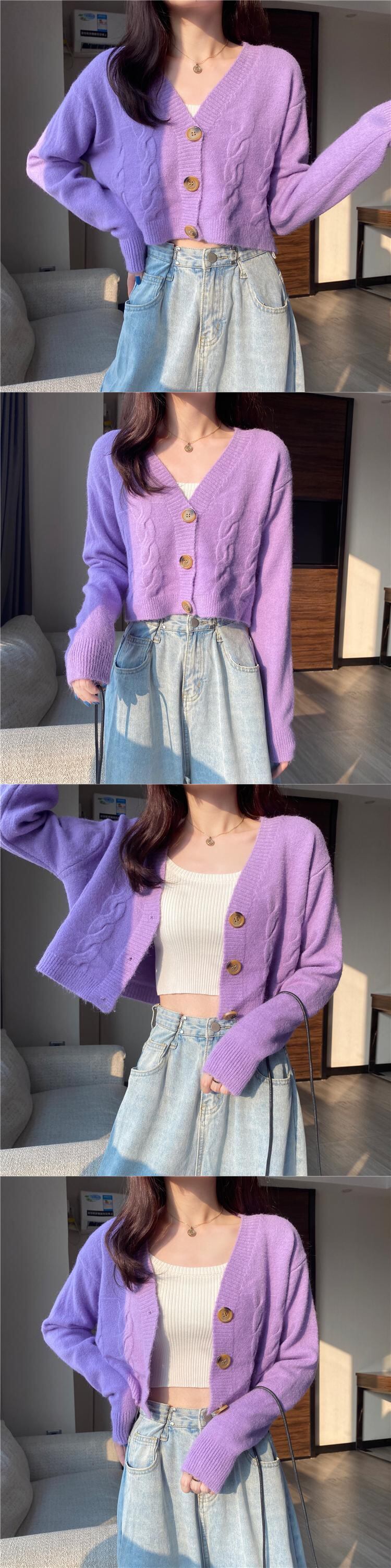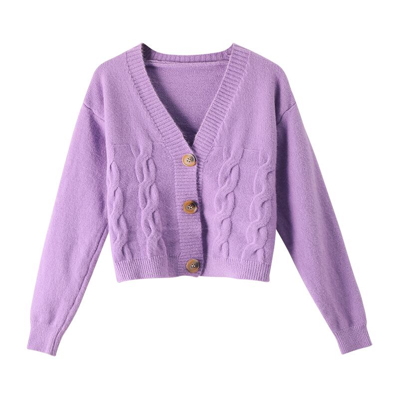 【送料無料】 ショートパープルツイストセーターカーディガンジャケットレディースニットルーズルーズアウターウェア怠惰な風長袖トップス春ワイルド ロング スプリング 春物 TB1 0163742110879