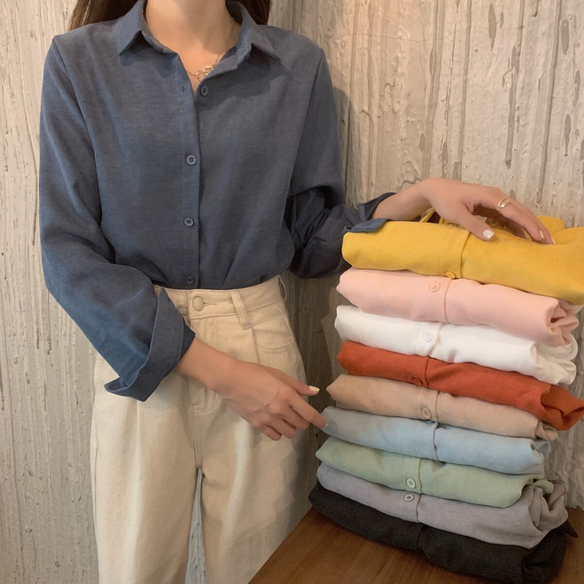 【送料無料】 2021年春の新春バージョンのボトミングシャツを着用する145のショーツ、長袖のアウターウェアのオールマッチシャツの女性 ロング スプリング 春物 ブルマー TB1 01905013154