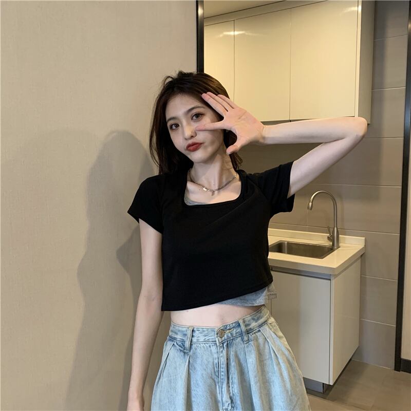 フランスのショートトップ女性のデザインセンスニッチbm風注意マシン露出臍の偽物2つの半袖Tシャツ潮 TB2 TB279068523261