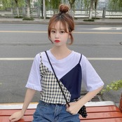 チェック柄半袖Tシャツ女性インタイドフェイクツーピーストップスデザインセンスニッチサマードレス2021ニュールーズバージョン 夏物 TB2 TB273664393518
