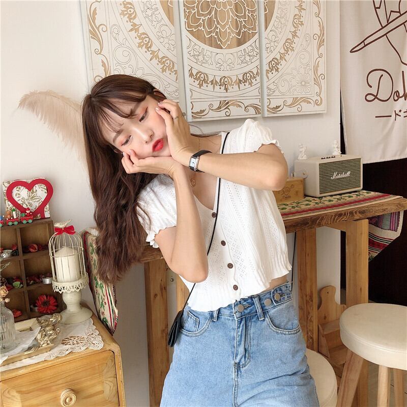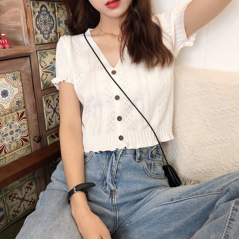 夏の新作スタイル洋風アイスシルクブラウスショートヒョナ風半袖VネックニットカーディガンTシャツレディーストレンド ハーフスリーブ サマー 夏物 TB2 TB218844064364