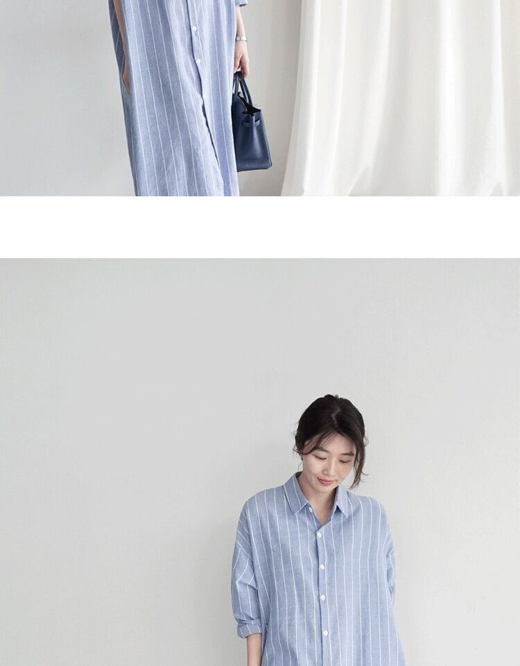春秋新作ルーズミドル丈オーバーザニー長袖ワンピースオールマッチカジュアルジャケットのストライプシャツスカート女性バージョン ロング スプリング 春物 オータム 秋物 TB2-3 TB2-34037349179