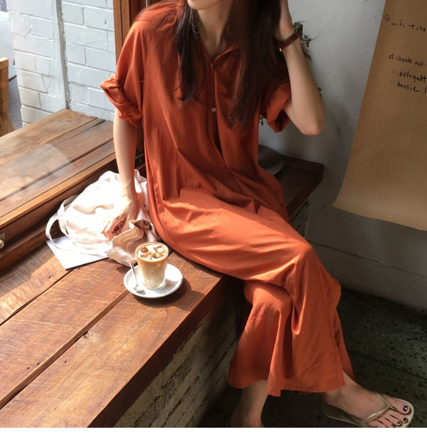 insフレッシュ酸素シャツドレス夏無地プリーツカラー半袖シャツカジュアルロングスカート サマー 夏物 ソリッドカラー TB2-3 TB2-354508640356