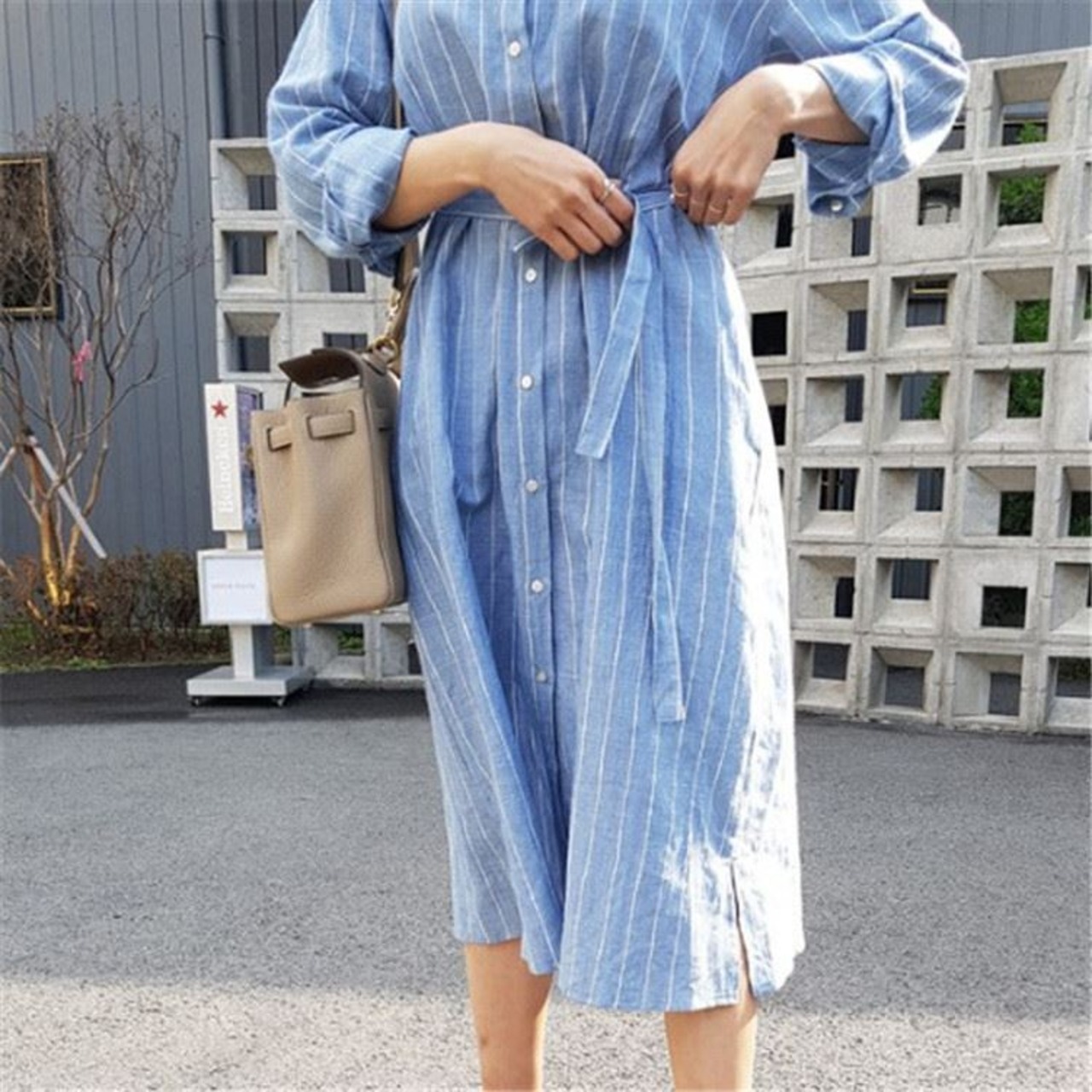 青と白のストライプのシャツ女性の春の新しい女性の青い大学スタイルのロングシャツスカートBF ホワイト ブルー スプリング 春物 TB2-3 TB2-372025419658
