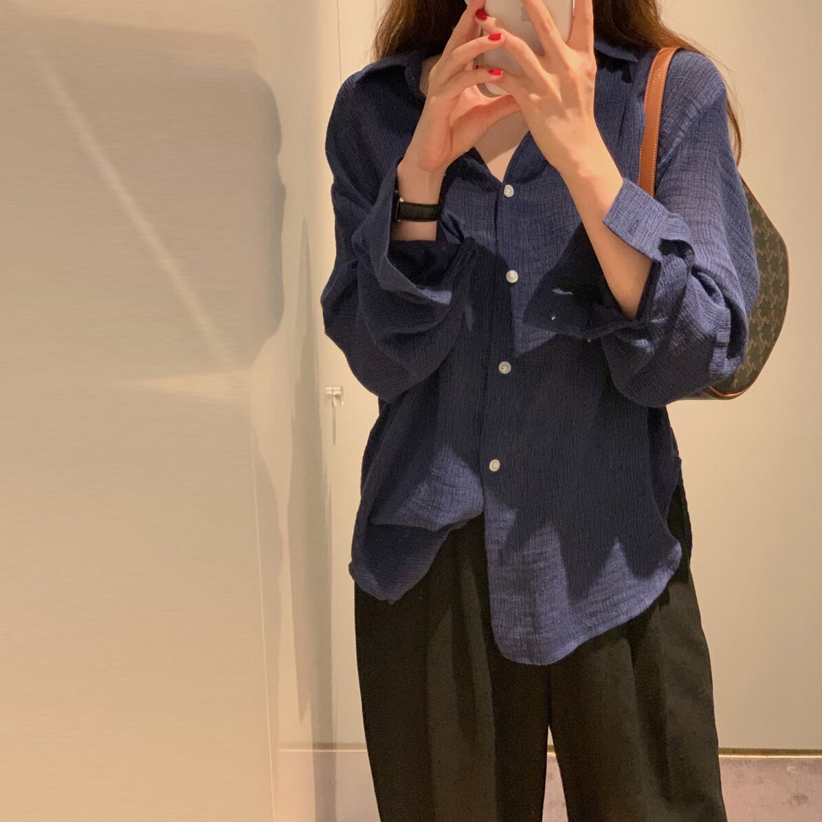 青いシャツの女性の2021年初春の新しい女性のシックなシャツのトップスは、センスのニッチなスタイルの日焼け止めをデザインします ブルー スプリング 春物 TB2-3 TB2-355117357797