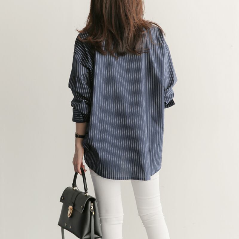 シャツの女性2021年の新しい春と秋のアウターウェア長袖ルーズPOLO襟のデザインセンス縦縞シャツの女性 ロング スプリング 春物 オータム 秋物 ストライプ TB2-3 TB2-377532783138