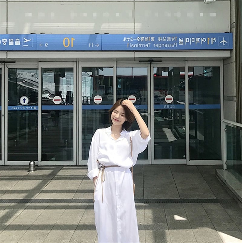 2021年夏の新しいスタイルのスリムなウエストシャツミドル丈のドレス女性のエレガントな白いシャツスタイルのロングスカート ホワイト サマー 夏物 TB2-3 TB2-356975816939