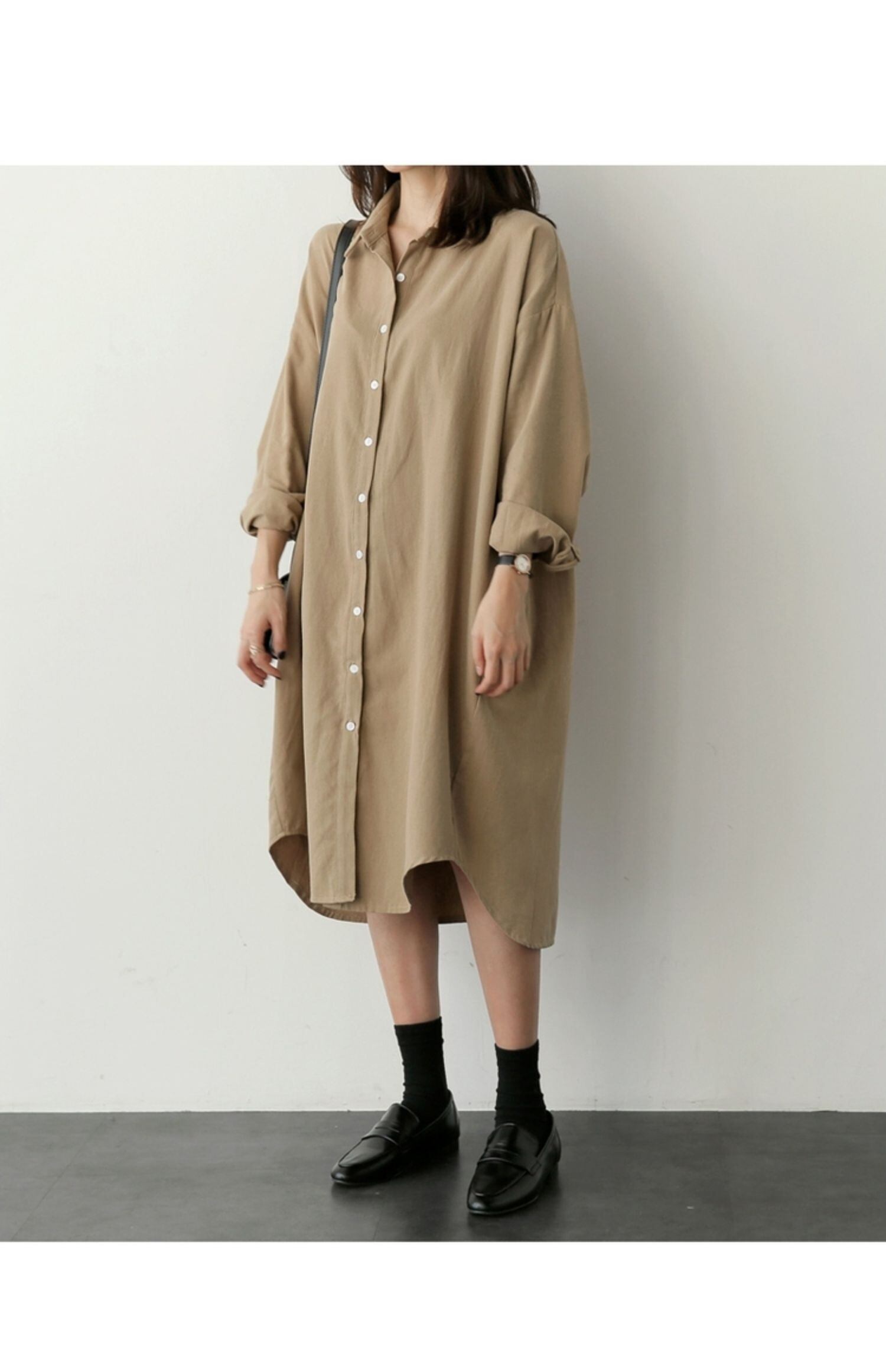 シャツの女性2021年春の新しい長袖ミドル丈ルーズフィット学生大型コットンシャツスカート ロング 大きめサイズ スプリング 春物 TB2-3 TB2-324638234696