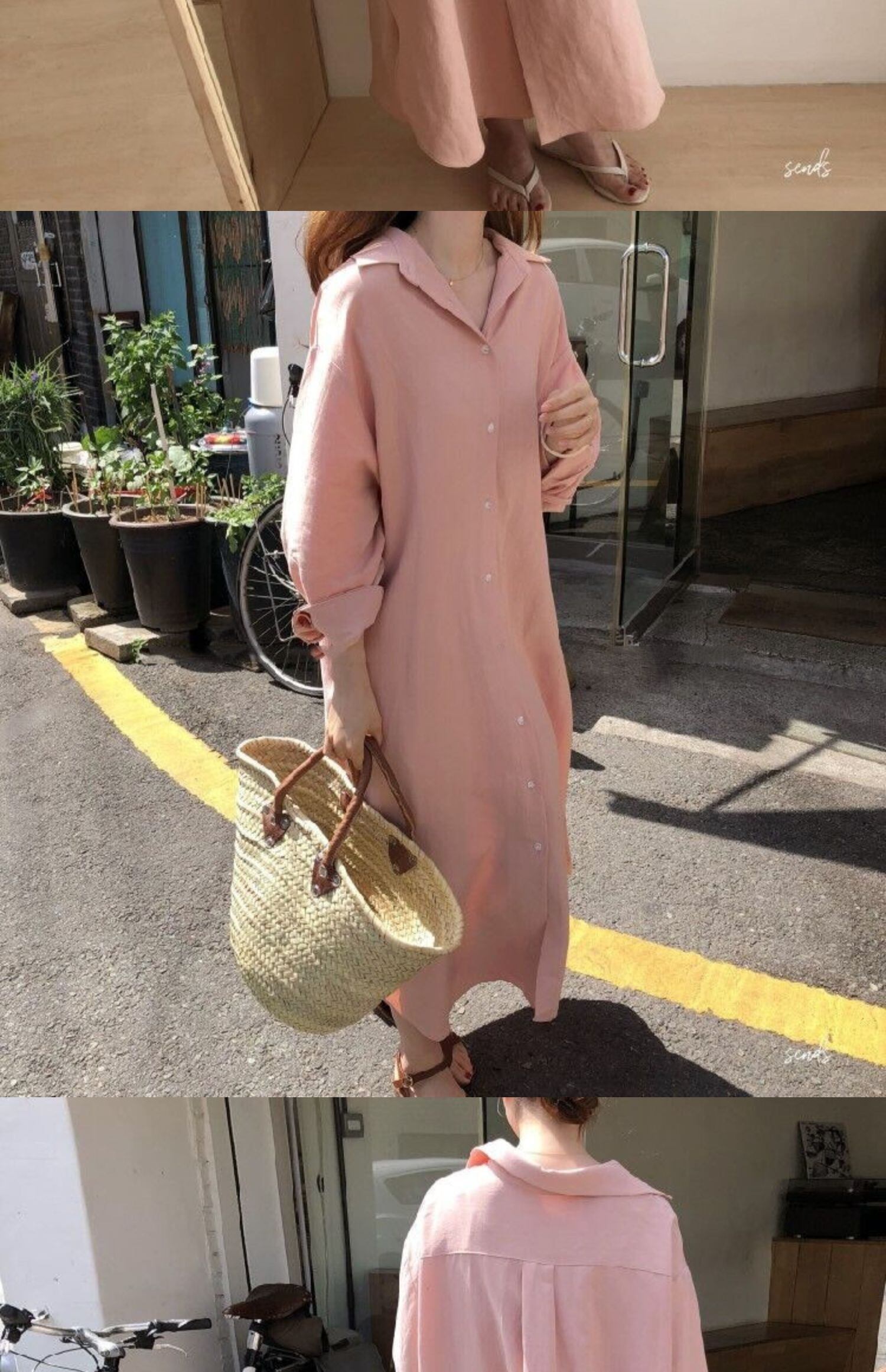 軽く成熟したエレガントな怠惰なスタイルのロングシャツスタイルのロングドレスコットンとリネンの薄いコートを膝のシャツのスカートの上に TB2-3 TB2-39195882609
