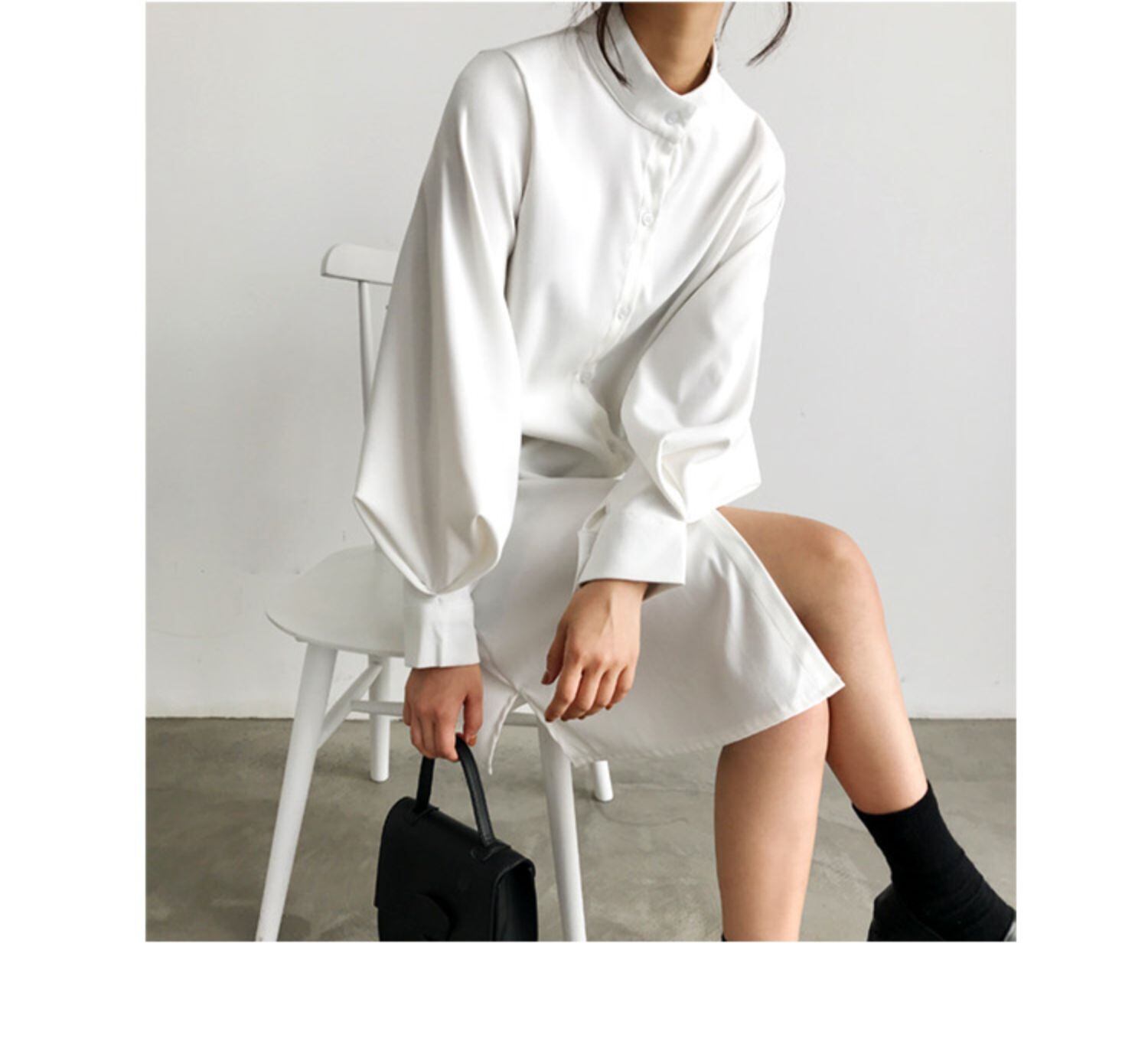 2021年新作シャツレディース春ミドル丈シフォン、スタンドカラーデザインセンスニッチプラスロングカラーレスシャツスカート スプリング 春物 TB2-3 TB2-335933722132