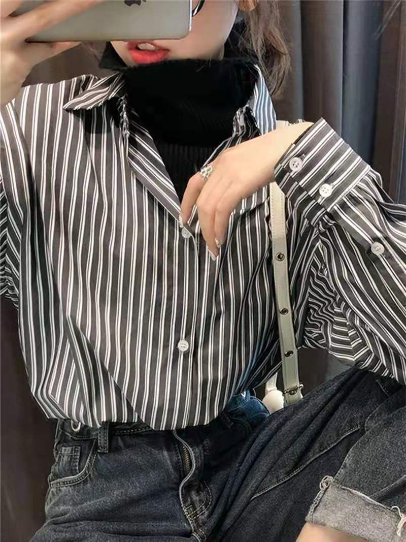 ストライプシャツレディース2021年春新作長袖オールマッチスタッキングシャツレトロ香港フレーバーインナーベースコート ロング スプリング 春物 TB2-3 TB2-361838853864