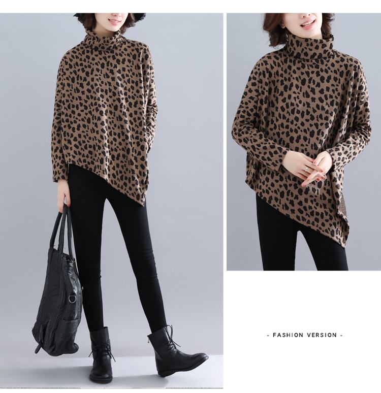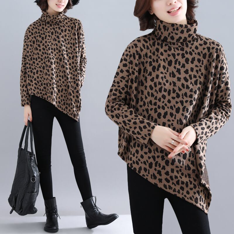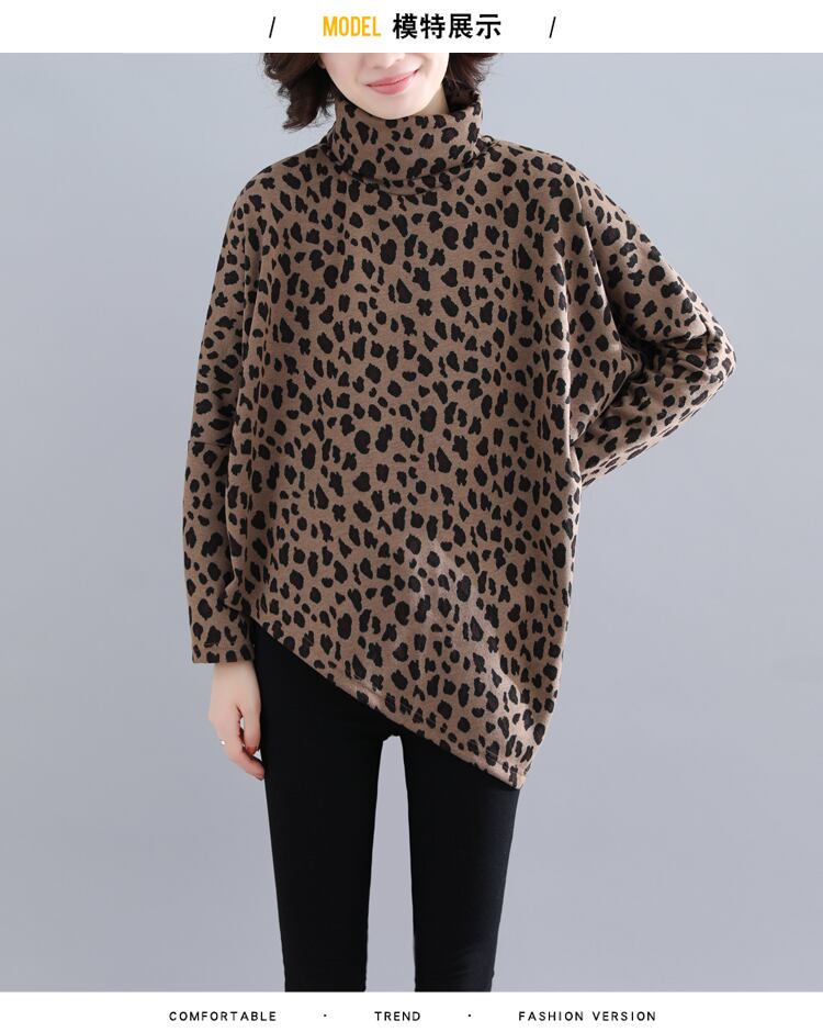 ファットシスターカバーベリープラスサイズブラウスメスヒョウ柄ルーズでスリムなオールマッチ長袖ボトミングシャツ春秋新作 ロング 大きめサイズ スプリング 春物 オータム 秋物 TB2-226071621165