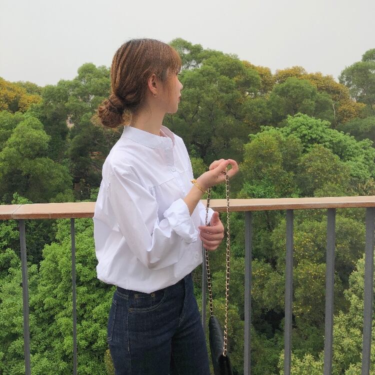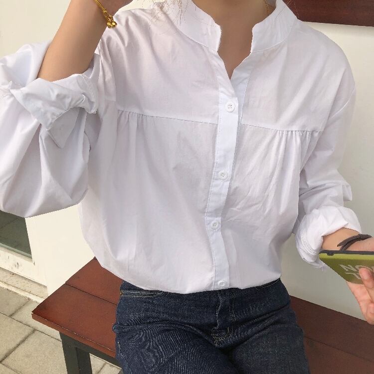 白いシャツの女性のスタンドアップカラーシャツ2021年春と秋の新しい文学的な気質の女性の長袖ルーズファッショントップス ロング ホワイト スプリング 春物 オータム 秋物 TB2-3 TB2-360421946031