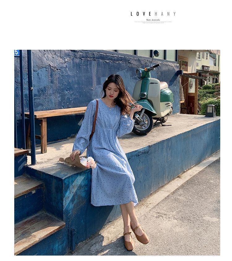 2021年春の新しいラウンドネック水玉シフォンドレスワイルドルーズで薄いウエスタンスタイルのロングベーススカート女性 スプリング 春物 Oネック TB2-5 TB2-542758024985