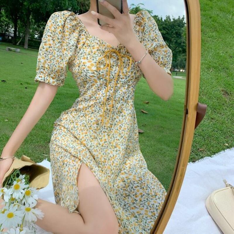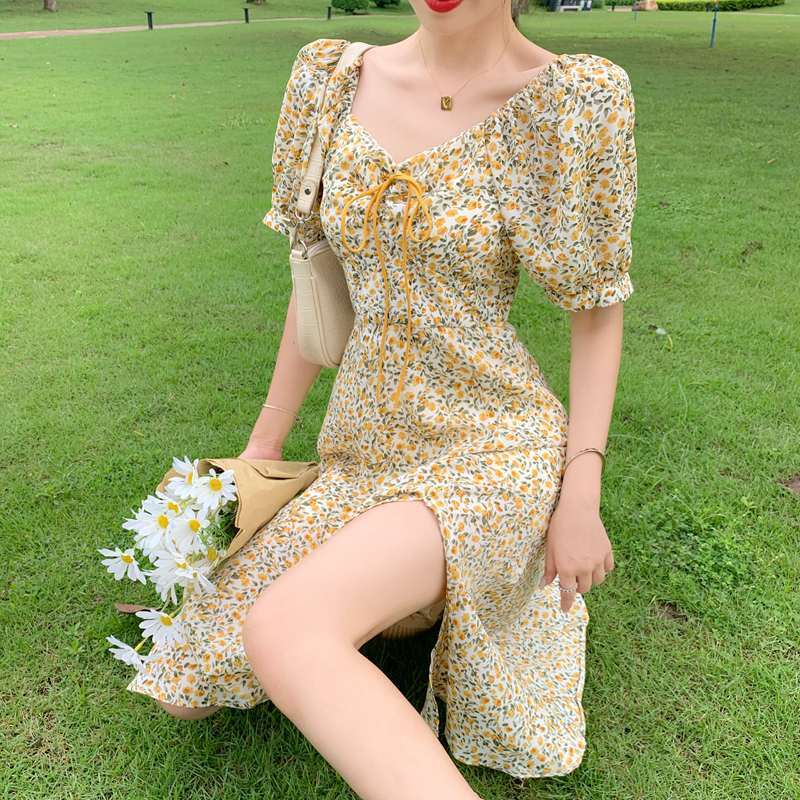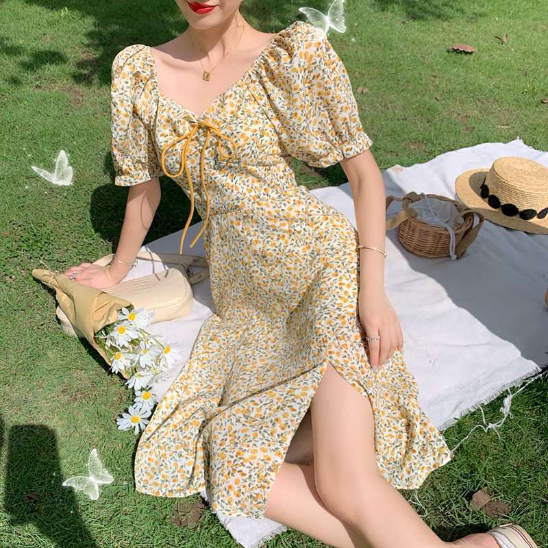 オールマッチシックフレンチ気質の2020年夏新バージョンは薄くてスプリットフローラルドレスミドル丈スカート サマー 夏物 花柄 TB2-5 TB2-576386034596