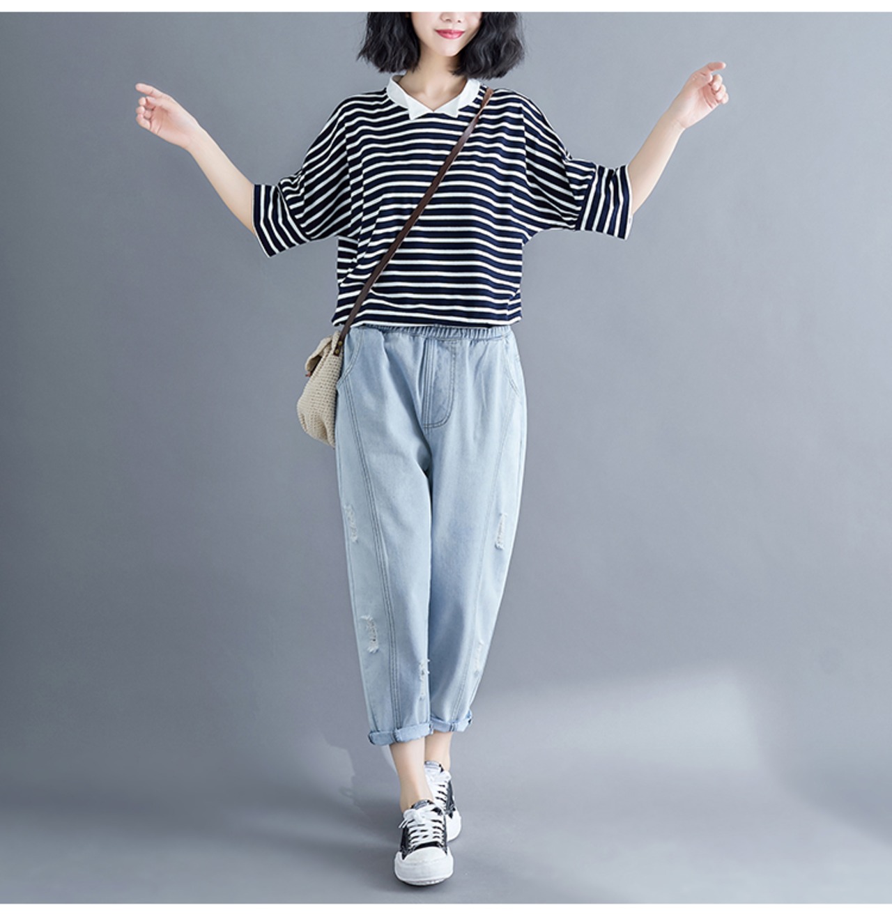 ややファットなウエスタンスタイル、ルーズ、シン、破れたデニムハーレムパンツ、2021年夏の新しいプラスサイズのレディースパンツ 大きめサイズ サマー 夏物 TB2-269483527593