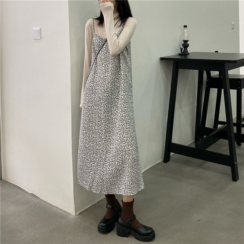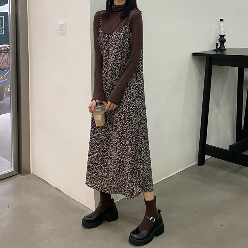2021年秋のドレス新しいスタイルのレトロなフローラルシフォンスリング年気質ルーズワイルドミドル丈スカート オータム 秋物 花柄 TB2-6 TB2-633918093201