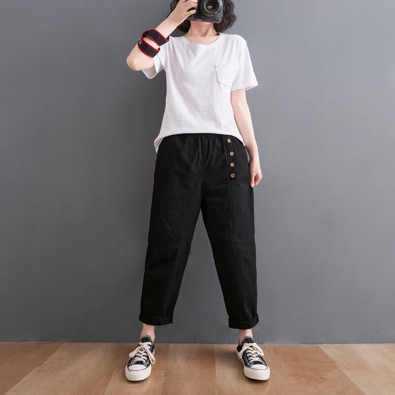 ファットシスタープラスサイズカジュアルパンツ女性ルーズで薄いオールマッチ伸縮性ウエスト無地ハーレムパンツ女性春夏新スタイル2021 エラスティック 大きめサイズ スプリング 春物 サマー 夏物 ソリッドカラー TB2-2709356432