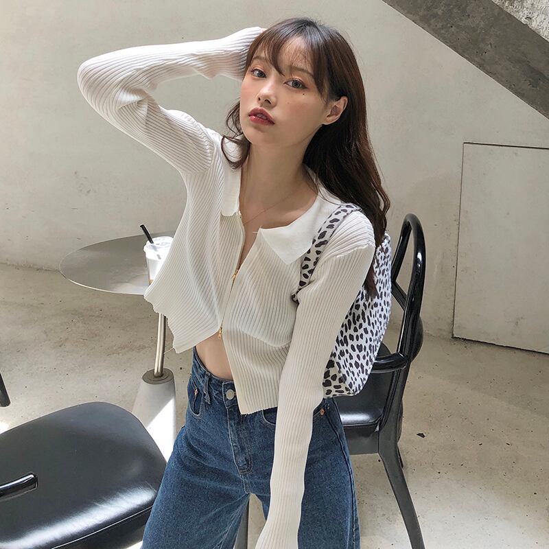 春と秋の服2021新しいスタイルの女性のニットセーターボトミングシャツショートセクシーな両頭シャツ長袖カーディガンジッパースーツ ロング スプリング 春物 オータム 秋物 TB2-6 TB2-693983171421