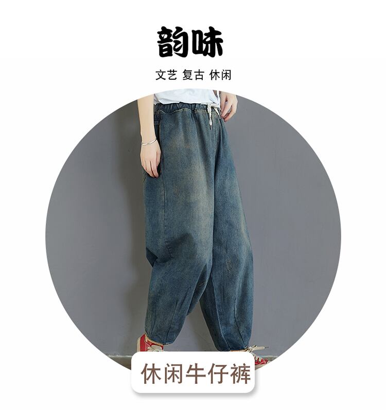 ファットシスターmmパンツ2021春新弾性ウエストネクタイ薄手のジーンズ女性ルーズワイルドパパパンツ エラスティック 伸縮 スプリング 春物 TB2-226893040775