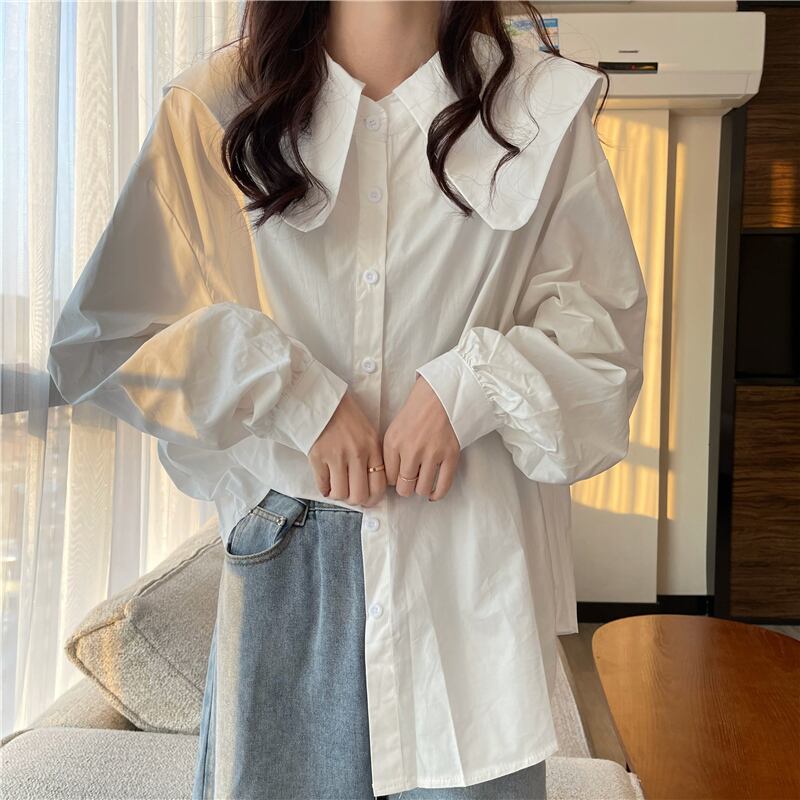 白いシャツの女性のゆるいニッチなデザインセンス新しい2021カジュアル春長袖シャツトップ ロング ホワイト スプリング 春物 TB2-6 TB2-619461963632