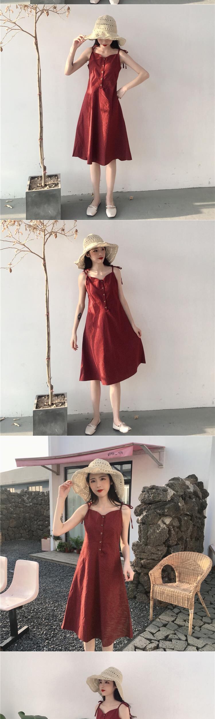 春の女性の新しい気質レトロチェック柄ボトミングスカート学生シングルブレストスリングLEDミドル丈Vドレス スプリング 春物 TB2-6 TB2-668837550345