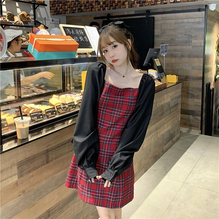 文学ファンガールレトロチェック柄ワンピース気質ウエストルーズショートスカート長袖スカート春秋 ロング スプリング 春物 オータム 秋物 TB2-5 TB2-561520115950