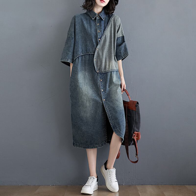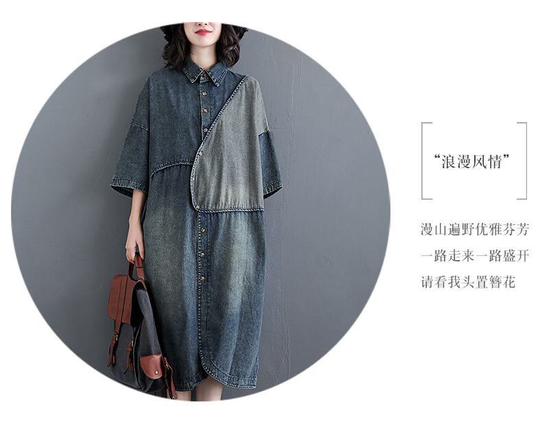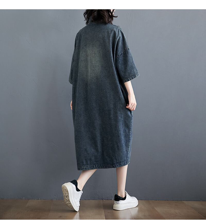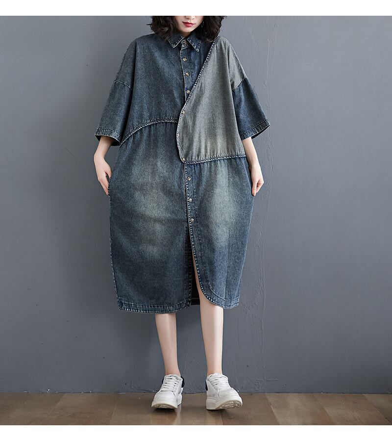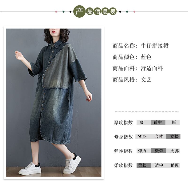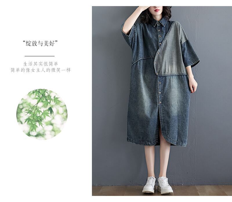 太った女性の腰の厚い隠された肉のドレスレトロな大きいサイズは古い洗浄されたパッチ半袖デニムスカート女性の春2021年になりました 大きめサイズ スプリング 春物 TB2-284075572681