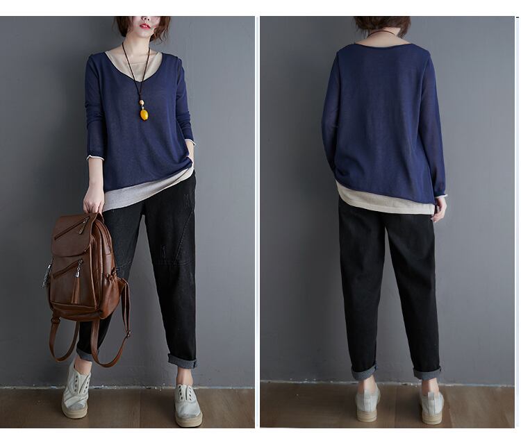 ファットシスタープラスサイズニットボトミングシャツ女性ルーズでワイルドヒットカラーフェイクツーピースストレッチトップス新秋冬2021年 大きめサイズ オータム 秋物 ウィンター 冬物 TB2-270690441147
